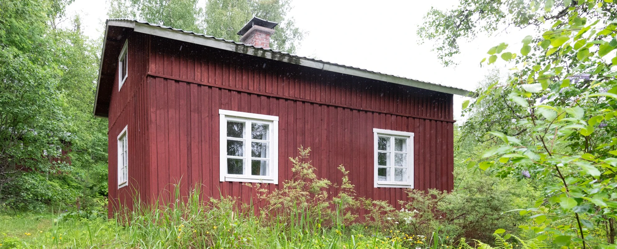 Se on käsinveistetty hirsirakenteinen 50-luvulla rakennettu "kuivanmaan mökki, joka on lautaverhoiltu ja punamullalla maalattu".